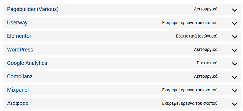 Χρησιμοποιούμε cookies διαφορετικών κατηγοριών, όπως περιγράφεται παρακάτω: